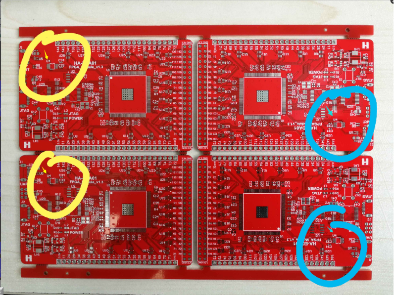 PCB打樣成品板客戶反饋在PCB原文件拼板發(fā)現(xiàn)個別字符U4元件位號無法改變方向。