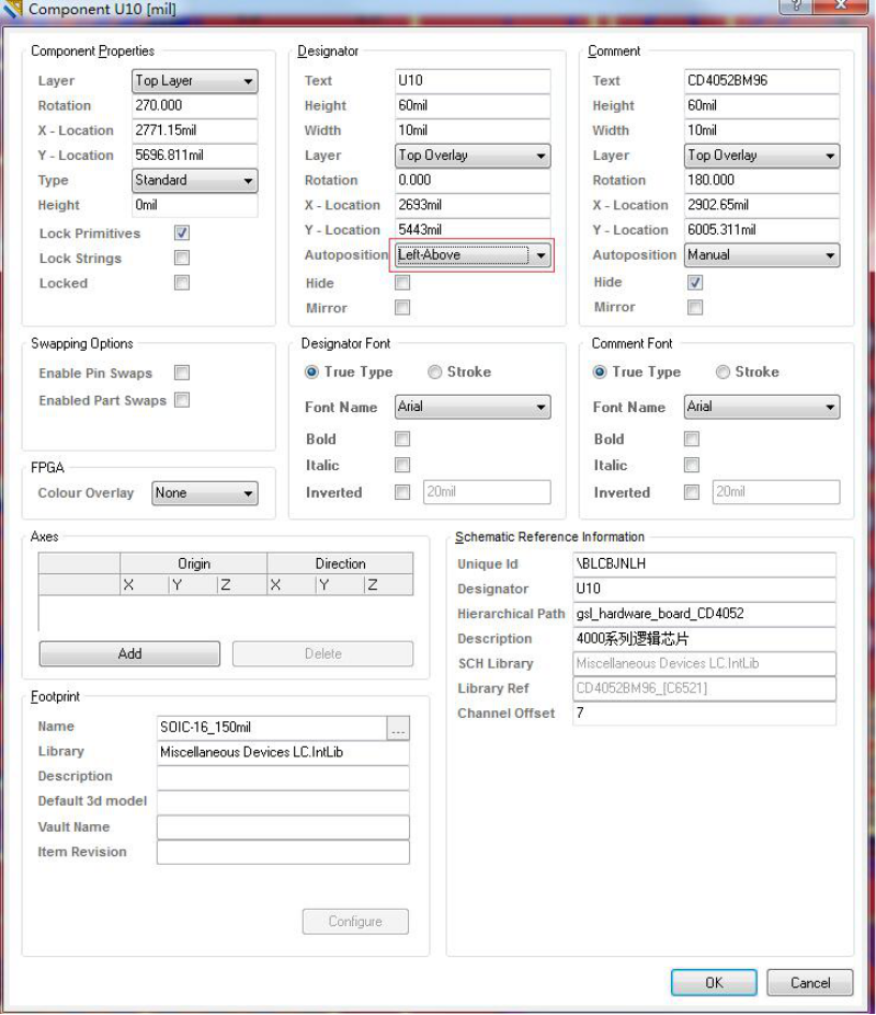 經(jīng)分析檢查發(fā)現(xiàn)封裝Autoposition(自動定位)選擇Left-Ablve