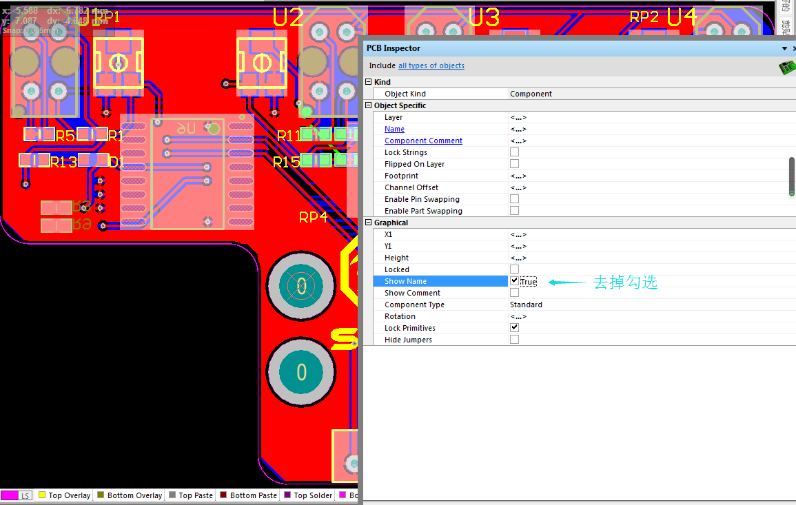 首先點(diǎn)中一個(gè)器件,右鍵找到查找相似對象然后直接應(yīng)用,不要改任何設(shè)置。器件就都會(huì)選中,然后確定,去掉勾選Show Name字符就消失了,大家可以試試!