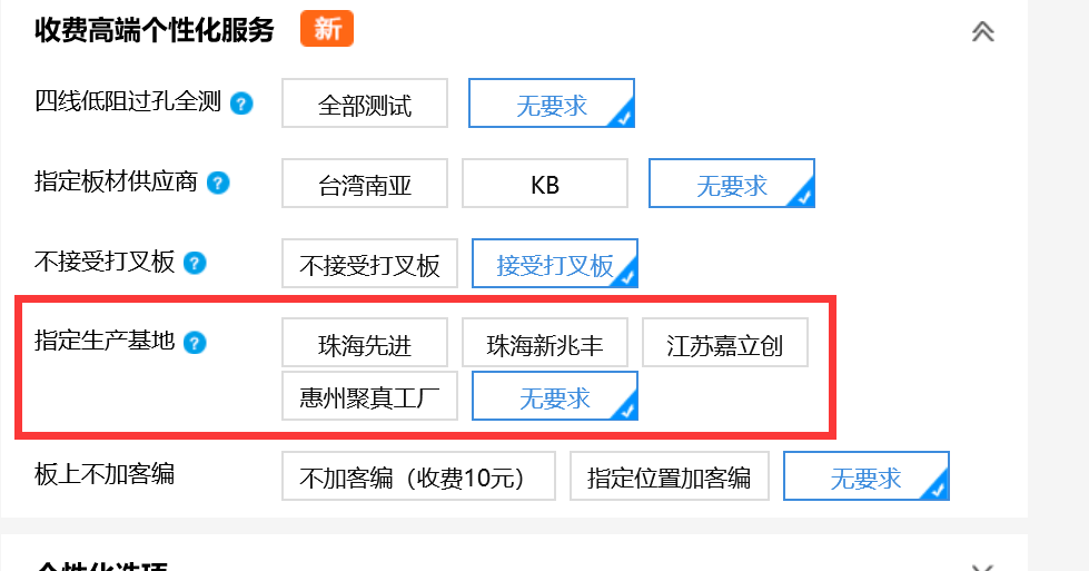 嘉立創(chuàng)開(kāi)放了”指定生產(chǎn)基地生產(chǎn)“的服務(wù)!