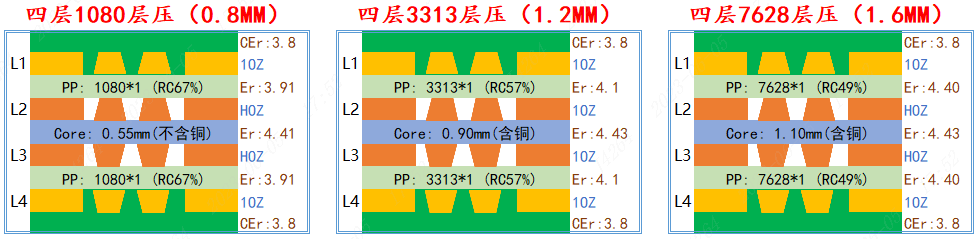 3)原層壓結(jié)構(gòu)使用的2313型號(hào)PP片,與新的3313型號(hào)PP片厚度及DK(Er)是一樣的,可以放心使用;
