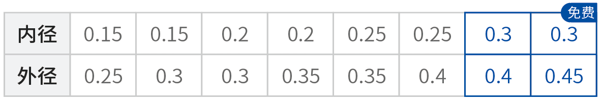 ②外徑必須大于內(nèi)徑0.1,推薦值0.15。示例組合如下: