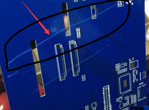 4)肉眼觀查下不接受綠油修補(bǔ)的劃痕;