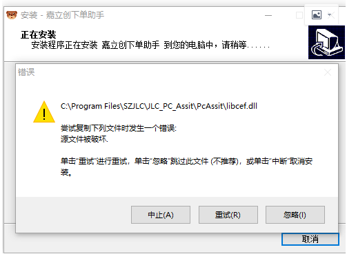 ②:更新下載的安裝包提示解壓報(bào)錯(cuò)