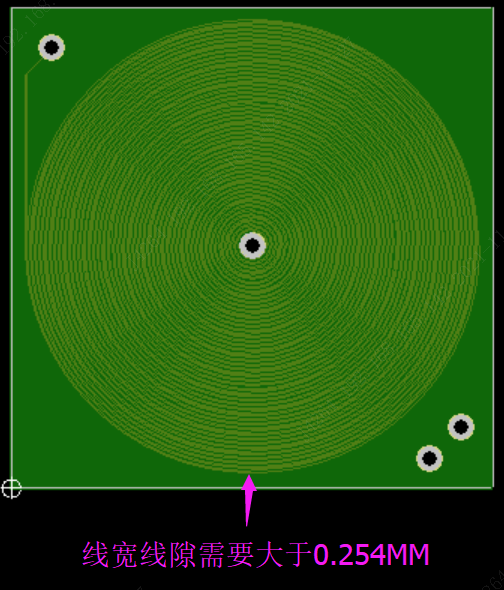 1.相對(duì)于常規(guī)的其它線路,環(huán)形線圈是同一個(gè)通路,對(duì)于環(huán)形線間相連的地方?jīng)]法測(cè)出短路的,因此要求線寬線距要求0.254mm(極限0.15mm,但要求線圈蓋油)。