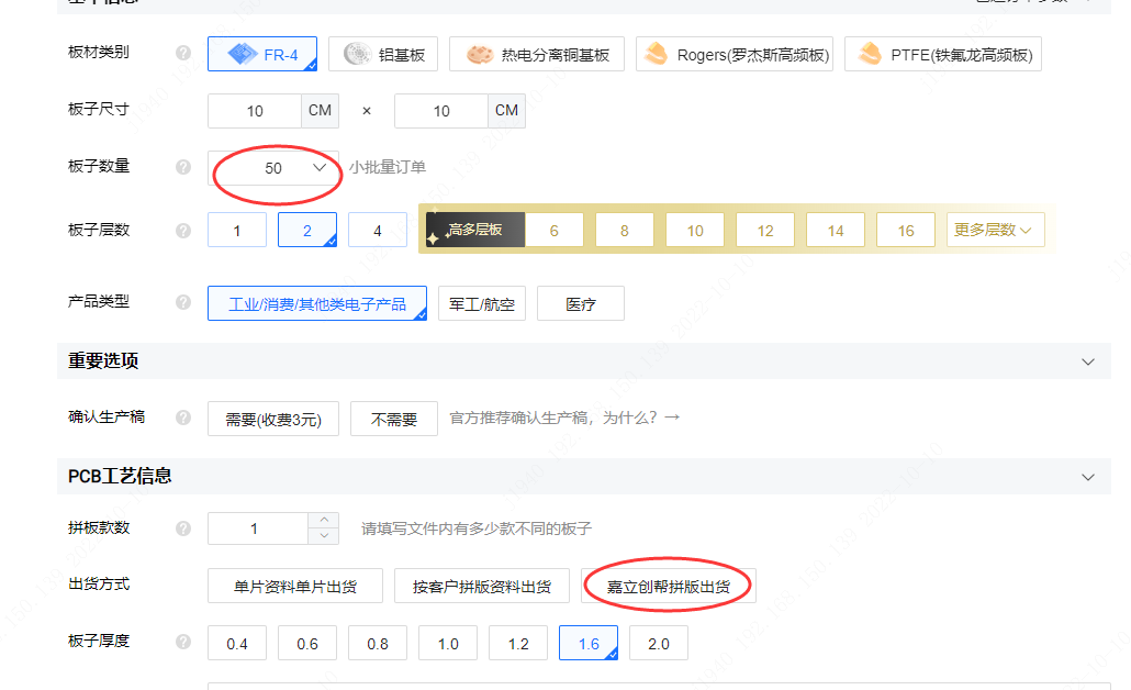 1、PCB 下單數(shù)量在≥50套(小板)的時(shí)候,可以選嘉立創(chuàng)幫拼版。