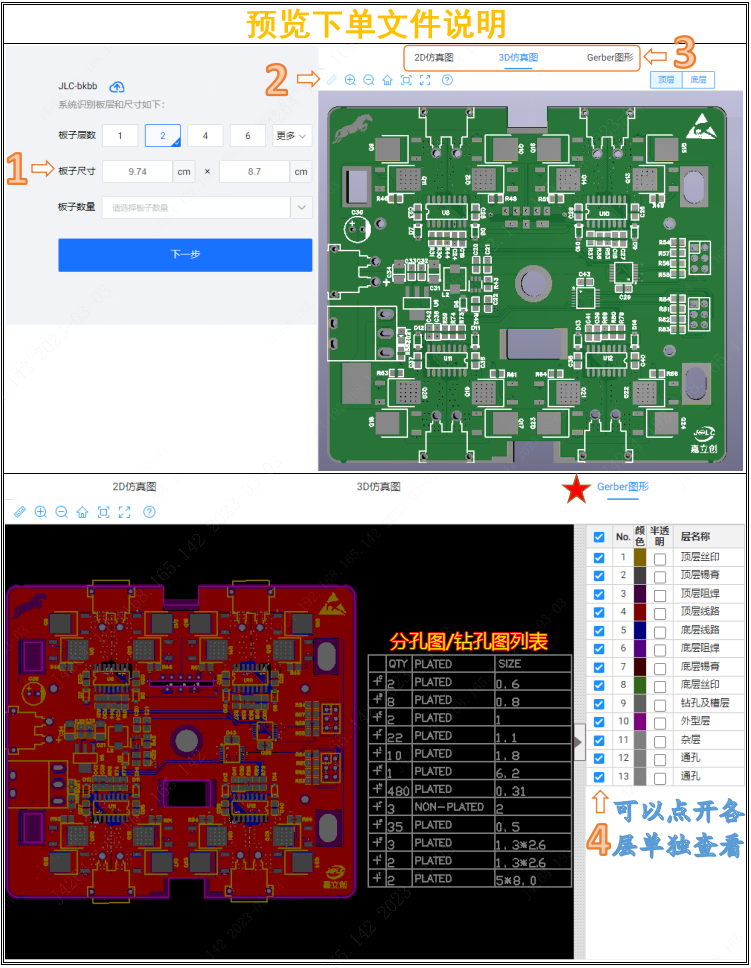 3)提供3種不同查看方式,需要查看詳細(xì)各層圖案的,建議使用"Gerber圖形"查看方式