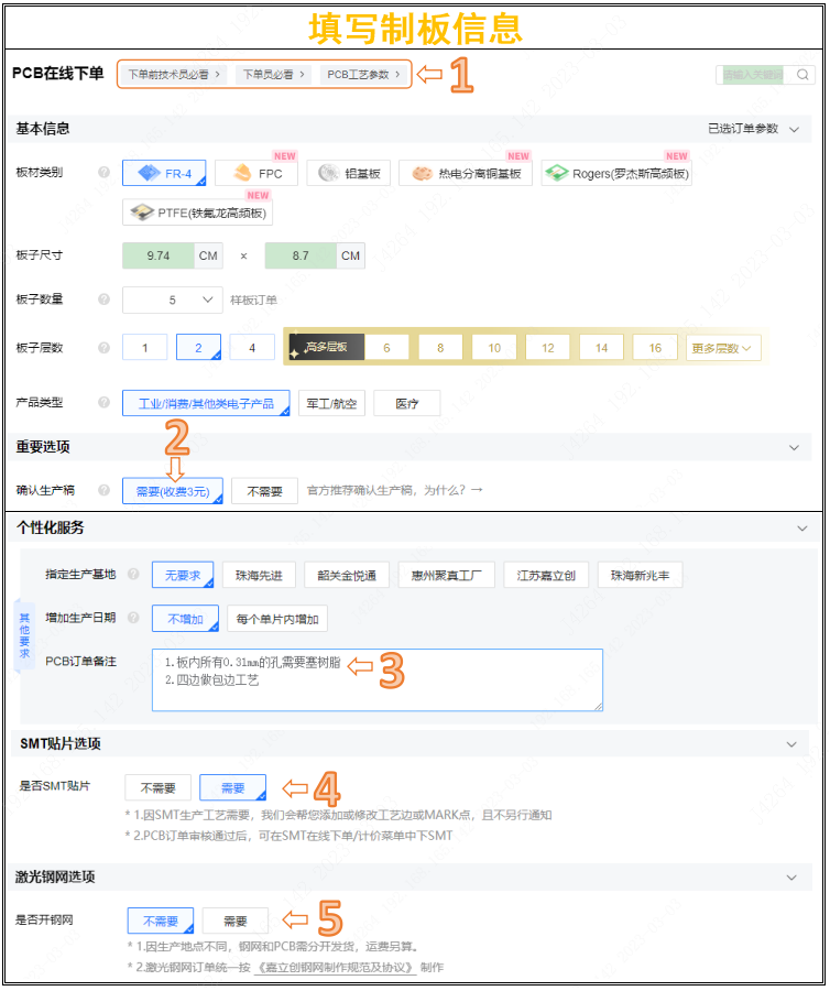 ■ 填寫制板信息