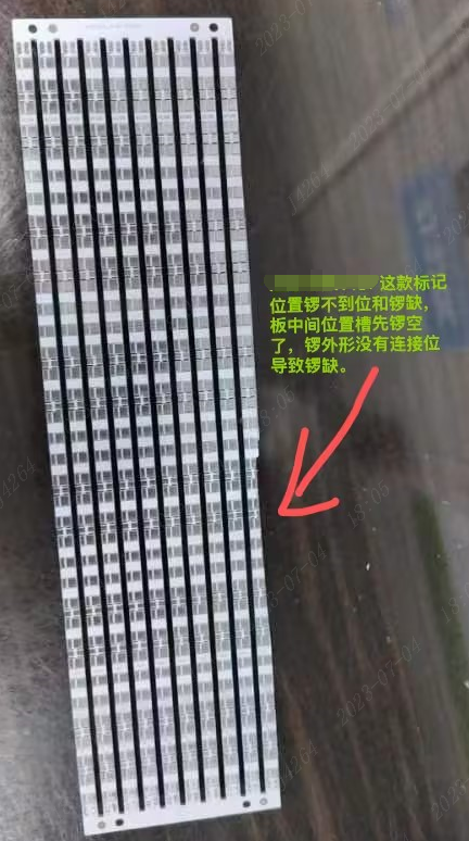 其它情況:此類長(zhǎng)條形板,不管是普鑼還是精鑼,也會(huì)出現(xiàn)鑼板不良的情況(需要每間隙一定寬度加連接位固定)