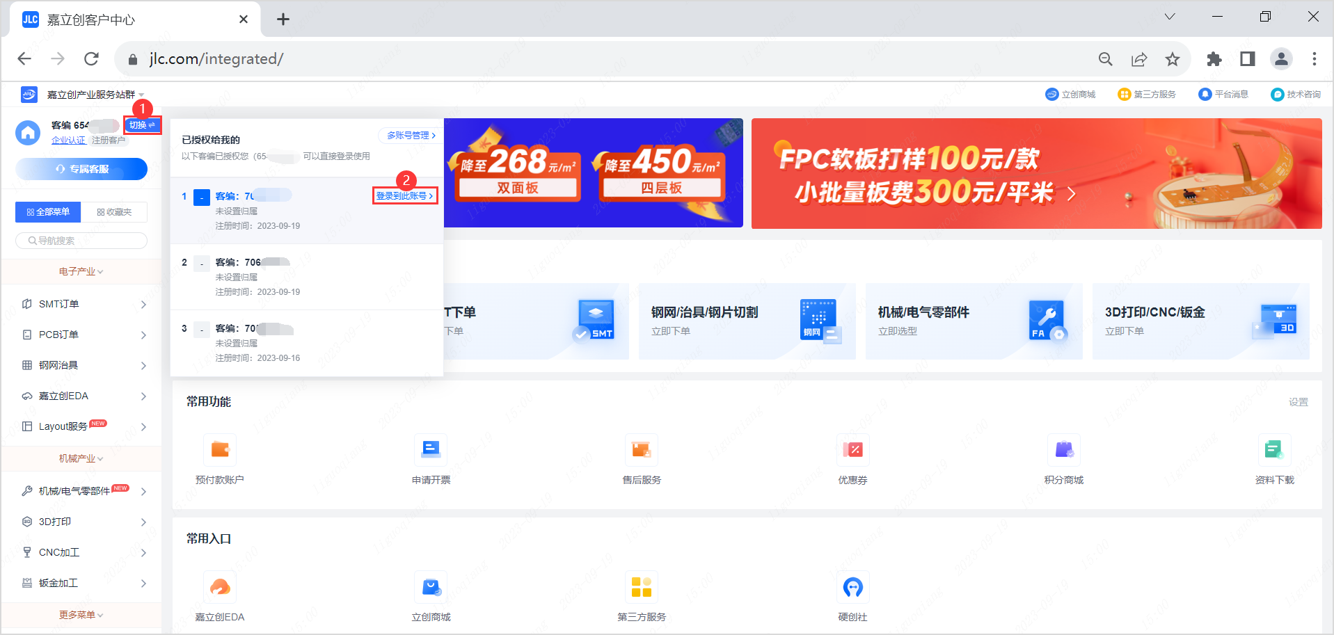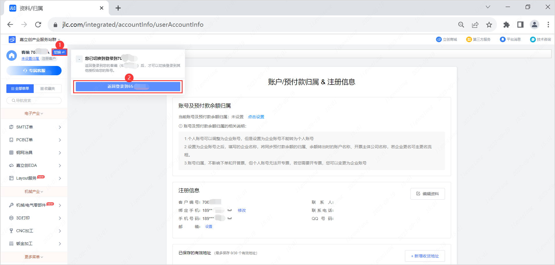 為了提升您賬號在嘉立創(chuàng)平臺上的使用便利性和靈活性,我們對多賬號進(jìn)行了管理功能完善,正式上線了 “ 多賬號管理 ” 和 “ 快捷切換賬號” 功能服務(wù)。
